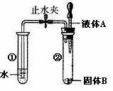 如图所示,打开止水夹,将液体A滴入试管②中与固体B接触,若试管①中的导管口有气泡产生,则液体A和固体B的组合不可能是![]()