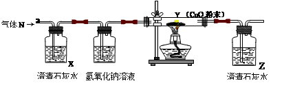 某混合气体N可能是由H2、CO、CO2中的一种或两种组成,为了解其组成情况,某同学设计了如下装置进行实验(假设NaOH溶液可以完全吸收CO2)。![]()