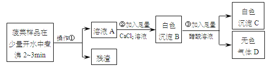 某同学对“菠菜中富含可溶性草酸盐和碳酸盐,与豆腐同食会引起结石”的说法产生了兴趣。