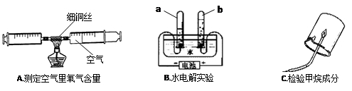(1)A实验是利用加热铜丝消耗管内的 ____ ,使管内气体减少来推测空气里氧气含量的;实验过程中可观察到铜丝逐渐由红色变为 色。
