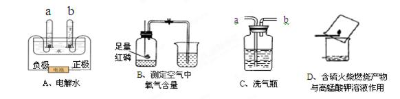 (4)D实验观察到: 色高锰酸钾溶液 。得知火柴梗燃烧能生成二氧化碳,同学们用燃着的木条代替含硫火柴重复上述实验,目的是 。