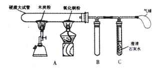(5分)在实验室中,老师用下面所示的装置进行实验(图中固定试管的仪器已略去):加热一段时间后,观察到木炭粉的质量明显减少;氧化铜粉下部出现了一层红亮的铜;澄清石灰水变浑浊。停止加热并冷却到室温。![]()