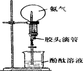 (3分)某化学兴趣小组进行了如图所示的喷泉实验,将胶头滴管中的水挤入烧瓶,然后打开止水夹,在烧瓶内出现美丽的红色喷泉。![]()
