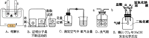 (6分)下列A ~ F是初中化学中的六个实验装置,请按要求填空:![]()