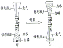 如图为探究物质燃烧条件设计的实验。甲中的白磷未燃烧,而乙中的白磷发生了燃烧。![]()