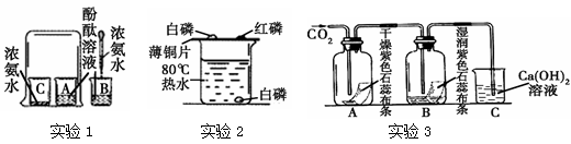 (1)实验1中,观察到A烧杯中的现象是 ,由此可验证分子的性质。