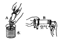 (2)如右图所示,用两支医用注射器,分别吸入等体积的空气和水,用手指顶住末端注射孔,将栓塞慢慢推入,哪支容易推压?为什么?![]()