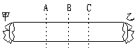 如下图所示的玻璃管两端甲、乙两处分别放着蘸有浓氨水和浓盐酸的棉花,若浓氨水挥发出来的氨分子(NH3)和浓盐酸挥发出来的氯化氢分子(HCl )接触时会产生大量的白烟,则白烟较多处应在________处(A、B、C)![]()