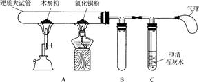 在实验室中,老师用下面所示的装置进行实验(图中固定试管的仪器已略去):加热一段时间后,观察到木炭粉的质量明显减少;氧化铜粉下部出现了一层红亮的铜;澄清石灰水变浑浊。停止加热并冷却到室温。![]()