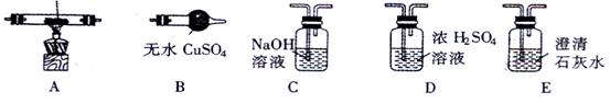 (1)该同学验证三种气体一定存在。实验进行时,若要气体从左向右流动,则这几种仪器的连接顺序应是:混合气体→ ( ) →( ) →D→( ) →( )(填A、B、C或E);