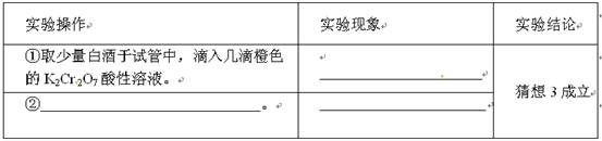 (3)白酒是乙醇的水溶液,酒中乙醇在微生物的作用下能被氧化成乙酸,现有一瓶密封放置了十几年的某种白酒,想知道该白酒的组成情况,设计了如下探究实验: