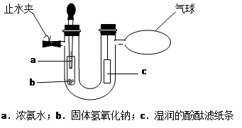 【小题2】.(2分)滴入2~3滴浓氨水后,在C处可观察到的现象是 。
