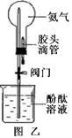 (4)图乙是利用氨气做的一个趣味实验(夹持设备已略去),烧瓶中装有干燥的氨气,胶头滴管中装有水,先关闭阀门,将胶头滴管中的水挤入烧瓶内,然后打开阀门,请你描述烧瓶中可能出现的现象。![]()