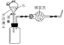 (3)为了验证这种可燃性气体含有碳和氢,他们把另一瓶气体装配为如右图所示的装置,旋开活塞放水到集气瓶中,经验纯后用燃着的火柴靠近导管口,气体燃烧起来,紧接着的操作、现象和判断是:①用内壁涂有澄清石灰水的小烧杯罩于火焰上方,如果杯底变浑浊,说明该气体中含碳;② 。干燥管中的碱石灰(CaO+固体NaOH)所起的作用是 。![]()