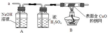 【实验探究】经丙同学确认安全后,小组同学首先对装置A进行称量,再将收集到的气体从a通入,过一会儿点燃B处酒精灯;一段时间后,发现表面含CuO的铜网由黑色变为光亮的红色;停止通气,再次称量装置A,发现质量不变。