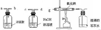 (1)实验室制得的一氧化碳中常混有二氧化碳和水蒸气,欲用纯净、干燥的一氧化碳还原氧化铁并检验生成的气体,正确连接装置导管口的顺序是:混合气体→ →g→尾气处理(填导管接口代号)。