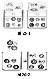 ⑵图26-2是稀盐酸和氢氧化钠溶液发生化学反应的微观过程示意图,该化学反应的实质可以表示为H+ + OH- = H2O