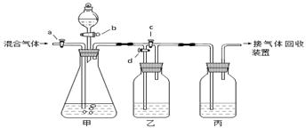 (6分)用下面的装置将一定量的CO2和CO的混合气体进行分离和干燥。图中的a、b、c、d均为活塞,可以控制气体的通过和液体的加入,实验前活塞均已关闭。请选择适宜的试剂完成上述实验。