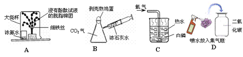 (2)图B所示实验,将注射器中浓石灰水注入瓶中,会看到鸡蛋被“吞”入瓶中,该实验中涉及的化学方程式为 。