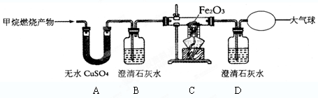 【实验探究】:为了验证上述猜想与假设,将甲烷在一定量的O2中燃烧的产物依次通过下列装置:![]()