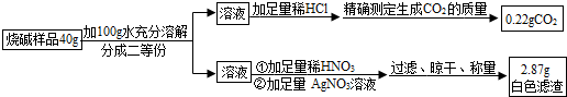 某工厂用电解饱和食盐水的方法生产氯气、烧碱、氢气等化工产品(反应的化学方程式:2NaCl+2H2O=2NaOH+H2↑+Cl2↑),这种工业成为“氯碱工业”,某研究性学习小组对该厂生产的烧碱样品进行如下探究。