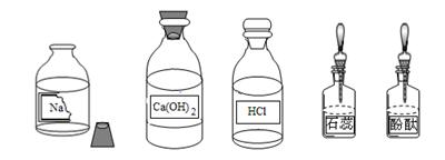 某校兴趣小组同学准备进行常见酸、碱、盐的性质实验时,发现实验台上摆放的药品中(如下图),有一装溶液的试剂瓶未盖瓶盖且标签破损,于是决定对这瓶溶液进行实验探究:![]()