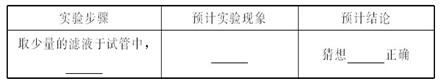 根据以上讨论,小组同学对合理的猜想进行如下实验探究。请你帮助完成下列实验报告: