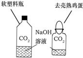 ①小明设计了甲、乙两个实验来验证C02与NaOH发生了化学反应,如右图所示.实验现象为:甲--软塑料瓶变瘪,乙--“瓶吞鸡蛋”.小雯同学提出质疑,她认为上述实验还不足以说明CO2和NaOH发生了反应.其理由是
