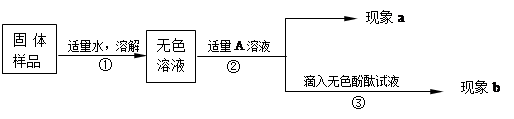 (2)若A是Ca(OH)2溶液,现象a有白色沉淀,现象b为无色酚酞试液变红色,则白色沉淀为 (填化学式),该实验 (选填“能”或“不能”)说明样品中有NaOH。