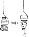 【收集气体】将矿泉水瓶装满水,用细绳吊入池中,再使瓶中的水全部倒出(见下图),![]()