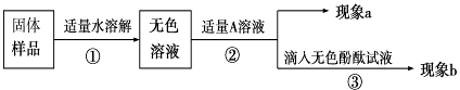 (2)若A是Ca(OH)2溶液,现象a有白色沉淀,现象b为无色酚酞试液变红色,则白色沉淀为 (填化学式),该实验 (填“能千或“不能”)说明样品中有NaOH。
