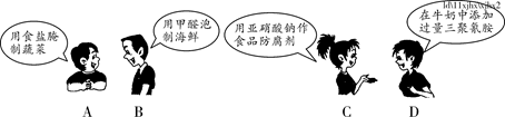 | C.用加碘盐做食品调味剂 | D.用工业色素给食品上色 |
