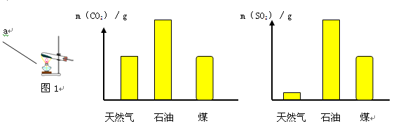 (4)充分燃烧1kg不同化石燃料所产生CO2和SO2气体的质量如图2 所示,则 燃烧最易导致酸雨, 燃烧对环境影响最小。