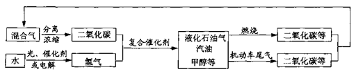 为解决日益加剧的温室效应等问题,科学家正在研究建立如下图所示的二氧化碳新循环体系:![]()