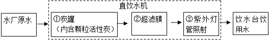 ①中活性炭的作用是 ,③中紫外灯管照射的作用是 。