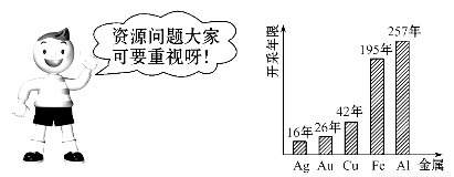 2011年3月在北京召开两会,资源成为两会的热门话题,资源要节约和合理利用,提倡建设资源节约型社会,矿物储量有限,而且不可再生。根据已探明的一些矿物的储藏量,并根据目前这些金属的消耗速度,科学家初步估计一些矿物可开采年限如下图所示: