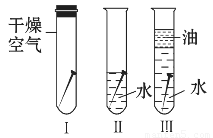 【实验现象】3天后,Ⅰ、Ⅲ中铁钉不生锈,Ⅱ中铁钉明显生锈。