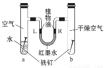 如图是探究铁锈蚀条件的装置。调节L端与R端的液面高度一致,塞紧木塞,一周后观察。