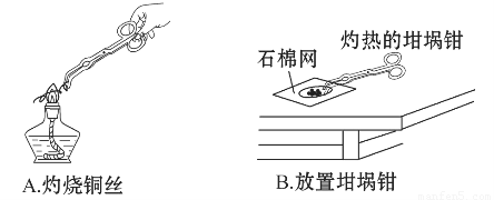 小思实验操作考试的题目是探究金属的化学性质,内容包括:铜在空气中灼烧、锌与稀硫酸反应、铝丝与硫酸铜溶液反应。如图是他实验操作考试中的部分情景。
