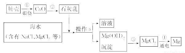 海水中有大量可以利用的化学资源,例如氯化镁、氯化钠、溴化钾等。综合利用海水制备金属镁的流程如图所示: