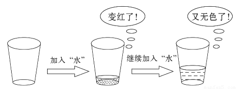 在学习“酸碱中和反应”时,老师给大家变了一个魔术——使“水”变色的杯子。操作过程及现象如图所示。
