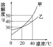 D.40 ℃时,分别用100 g水配制甲、乙的饱和溶液,所需甲的质量大于乙的质量