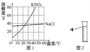 (1)他查阅了两种物质的溶解度曲线,如图1所示。25 ℃时,KNO3的溶解度是___________g,经分析KNO3中混有少量NaCl的提纯方法是______________,用此法获得了足量的KNO3固体。