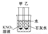 如图所示,在盛冷水烧杯中放入甲、乙两支试管(试管中都有未溶解的该溶液的溶质),若使甲试管中晶体减少,乙试管中晶体增加,需向烧杯中加入的物质是(?? )