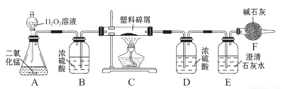 某化学研究小组的同学对某种塑料袋的组成进行分析研究(资料显示该塑料只含C、H两种元素)。他们设计了下图所示的实验装置,使该塑料试样在纯氧中完全燃烧,观察实验现象、分析有关数据、推算元素含量。