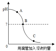 实验小组探究盐酸和氢氧化钠反应过程中溶液pH的变化规律,得到如下图所示曲线。下列有关该实验事实的说法正确的是(? )