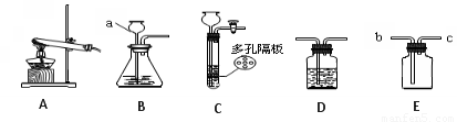(3)若要制取二氧化碳,在B装置中装入的药品是??????? 和??????? 。其化学方程式为????????????????? 。若要获得干燥的二氧化碳,除发生装置外,还应选用D装置,并在该装置中盛放 ??? (填写试剂名称)。如果用E装置收集该气体,则气体从????? 端进入(填“b”或“c”)。若用C装置也可以制取二氧化碳或氢气,该装置的优点是??????????????????????? 。