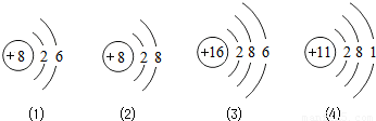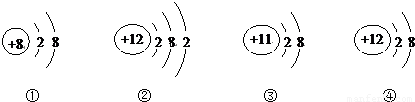 A.它们表示四种不同的元素 B.粒子①是阴离子
