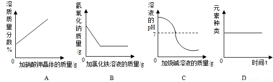 A.某温度下,向一定量接近饱和的硝酸钾溶液中不断加入硝酸钾晶体