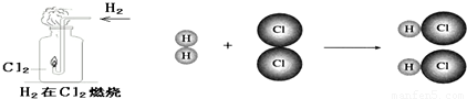 如图是氢气在氯气中燃烧的实验装置图和微观模拟图,请回答.